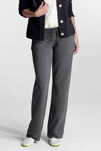 French terry is a soft blend of cotton and rayon-modal Wide rib-knit waistband has a drawstring to adjust the fit. Front pockets are stitched down, so they lie flat. Figure-balancing straight legs Everything about them is easy. From the sink-in soft French terry fabric to the rib-knit waistband to the straight-leg silhouette. Once you put them on, you'll want to live in them. 57% cotton/38% rayon-modal/5% spandex.