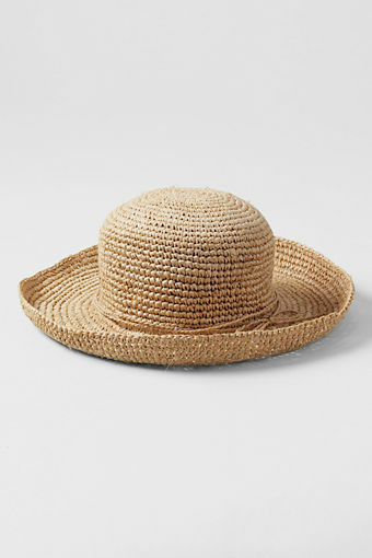 100% straw Straw cord hat band 1 1/4"-wide elastic sweatband 4 1/4"-wide brim Classic style keeps harmful UV rays off face and neck on sunny days. And unlike some, this hat is flexible so it will stow in a tote. Has an elasticized sweatband and straw cord hat band. Imported. Spot clean.